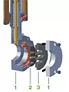 Konstruktionsprinzip, welches auf zwei aufeinander gleitenden Dichtscheiben
